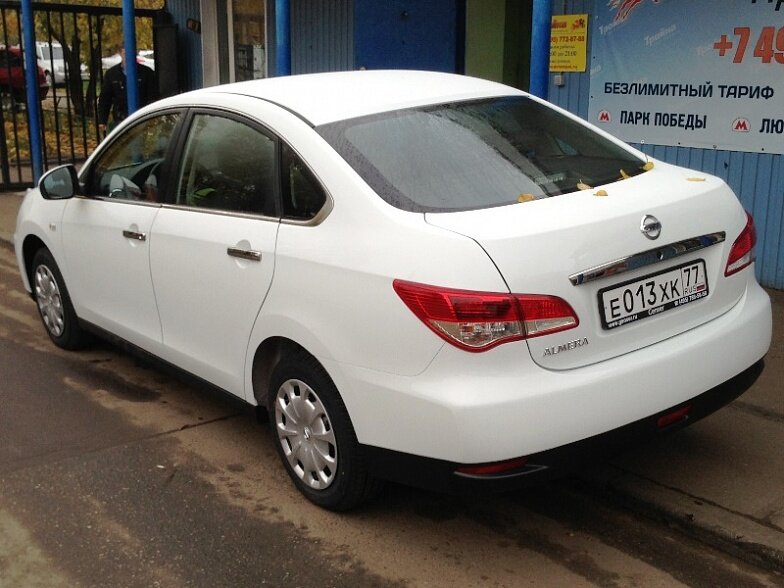 Московская прокатная компания «АрендаАвто-лнн» предлагает взять в аренду Nissan Almera IV MT белого цвета с механической коробкой передач по низкой цене.